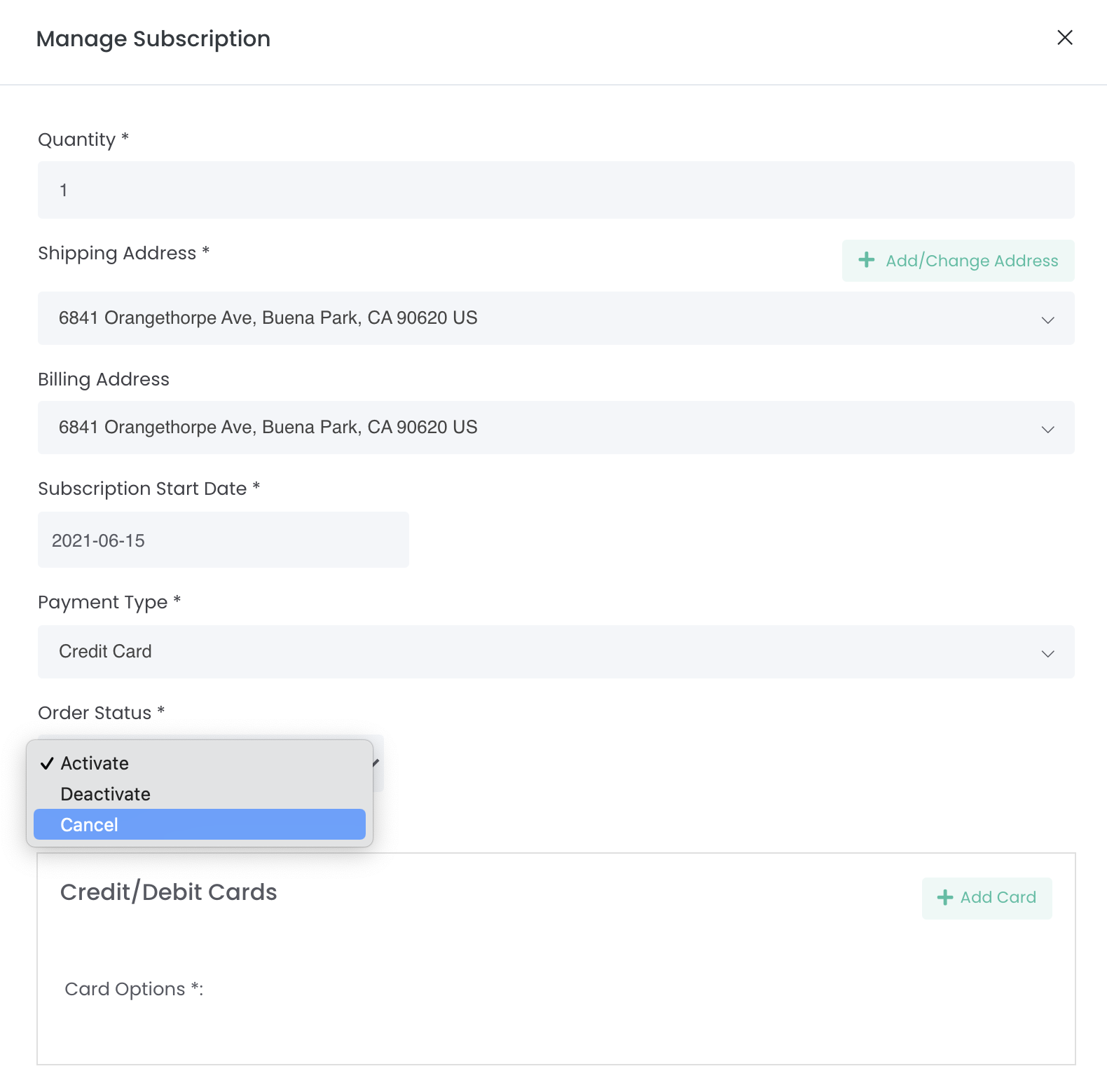 Choose Deactivate in Order Status and click Update. Deactivation does not delete the order information yet keeps it inactive. If members do not choose to reactivate the order, it will stay dormant permanently.